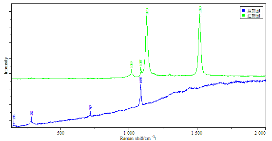 紅色、淺粉色紅珊瑚的拉曼光譜圖如下圖所示: