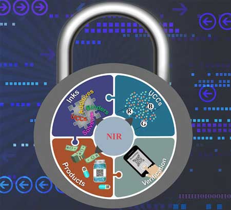 紅外上轉(zhuǎn)換材料還可以制作成無(wú)色油墨材料,做成特征圖案,例如印制成二維碼或者含有隱藏信息的復(fù)雜背景圖案,或者與其他防偽技術(shù)可以互相結(jié)合,可以大大增加防偽的力度。