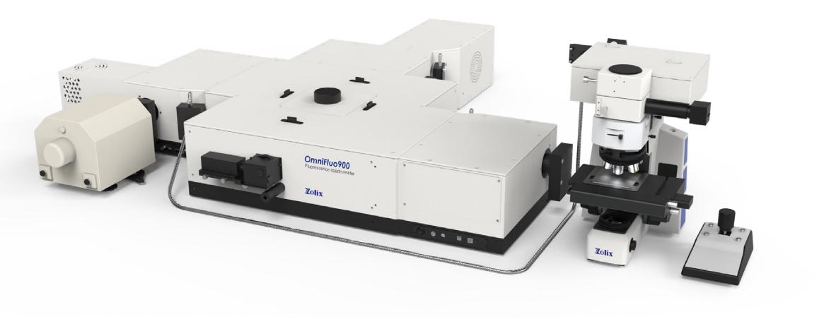 本文中熒光發(fā)光及壽命衰減曲線由卓立漢光公司的OmniFluo990穩(wěn)態(tài)瞬態(tài)熒光光譜儀完成。OmniFluo990為模塊化搭建結構,通過搭配不同的光源、檢測器和各類附件,完成鈣鈦礦太陽能電池中不同Hole Conductor的空穴提取效果的評價。