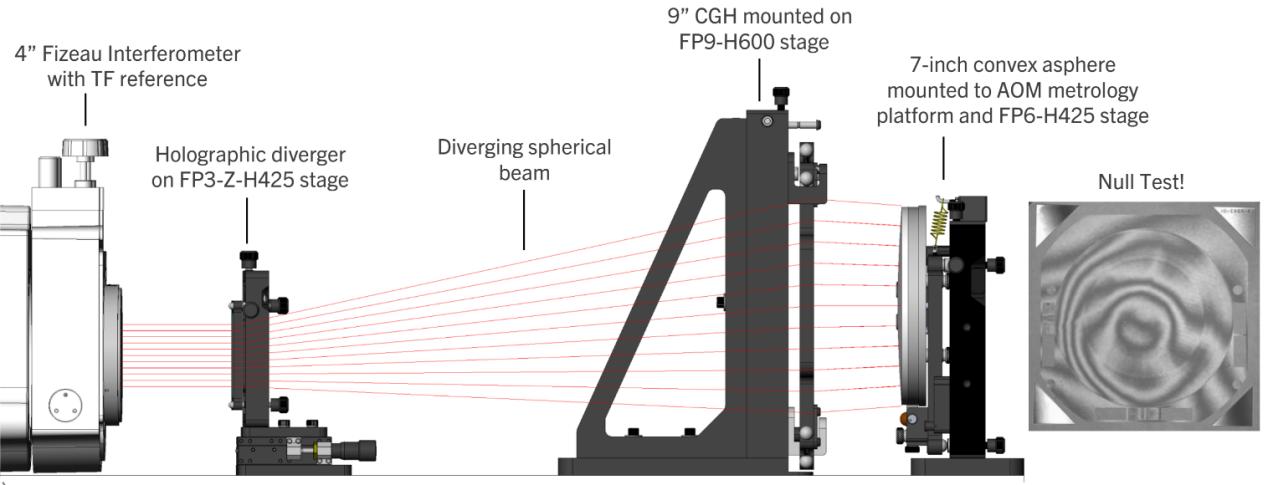 航空相機鏡頭的組裝中,因為涉及到的光學元件尺寸往往較大較重,且材料、面型、封裝方式等基于光學設(shè)計,要求各不相同。并且考慮到實際使用時的復雜環(huán)境,所以對各個光學元件的標定測試有著極高的要求,一種常用的方式是基于干涉檢測計算全息圖(CGH),實現(xiàn)對柱面光學器件的干涉檢測。
