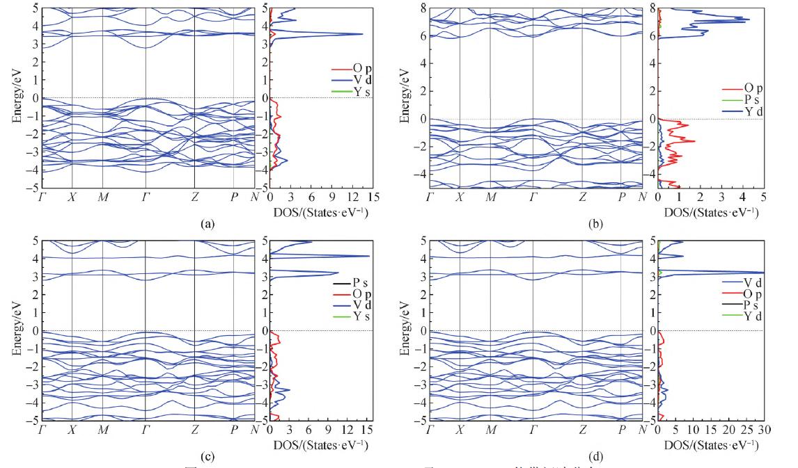 圖4 YVO4 (a)、YPO4(b)、Y2VPO8 (c)及Y2PVO8(d)能帶間隙分布