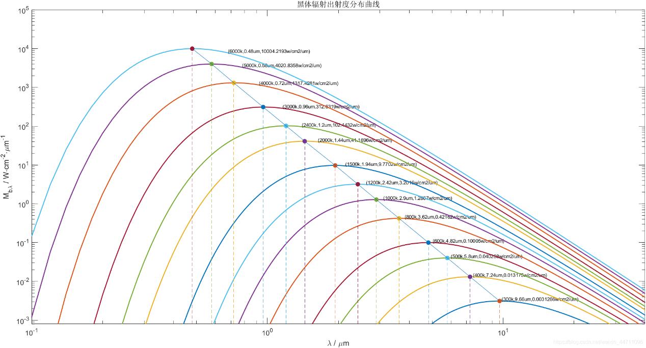 圖1 不同溫度下熱輻射光譜能*密度的分布(來(lái)源于網(wǎng)絡(luò))