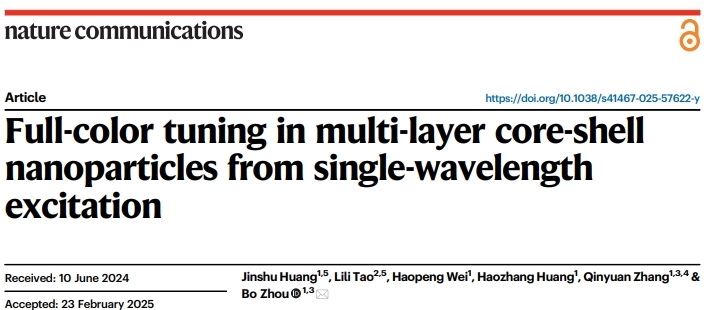Huang, J., Tao, L., Wei, H. et al. Full-color tuning in multi-layer core-shell nanoparticles from single-wavelength excitation. Nat Commun 16, 2378 (2025).