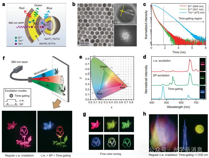 圖4. 上轉(zhuǎn)換的單波長響應(yīng)全彩調(diào)諧及其潛在應(yīng)用