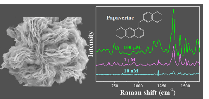 當(dāng)一些分子被吸附到某些粗糙的金屬表面上時(shí),他們的拉曼散射強(qiáng)度會極大的增強(qiáng),后來科學(xué)界把這一現(xiàn)象命名為表面增強(qiáng)拉曼散射效應(yīng)(Surface-enchanced Raman Spectroscopy, SERS),簡稱SERS。常用的基底有貴金屬(Cu,Ag,Au 等)粗糙電極、貴金屬溶膠、納米顆粒、納米陣列等,基底也賦予了SERS具備更高的高靈敏度,故廣泛應(yīng)用于生物制藥、食品安全、刑偵安檢等領(lǐng)域。該技術(shù)可以獲得痕量分子結(jié)構(gòu)信號,特別適合于對微量物質(zhì)的研究分析。但其基底重現(xiàn)性和穩(wěn)定性難以控制,這一定程度上限制了其推廣和應(yīng)用。因此,研究和開發(fā)優(yōu)良的基底成為SERS研究的重點(diǎn)和熱點(diǎn)。