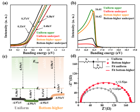 圖4 吸收層前表面和背表面的UPS光譜、能帶排列和EIS奈奎斯特圖