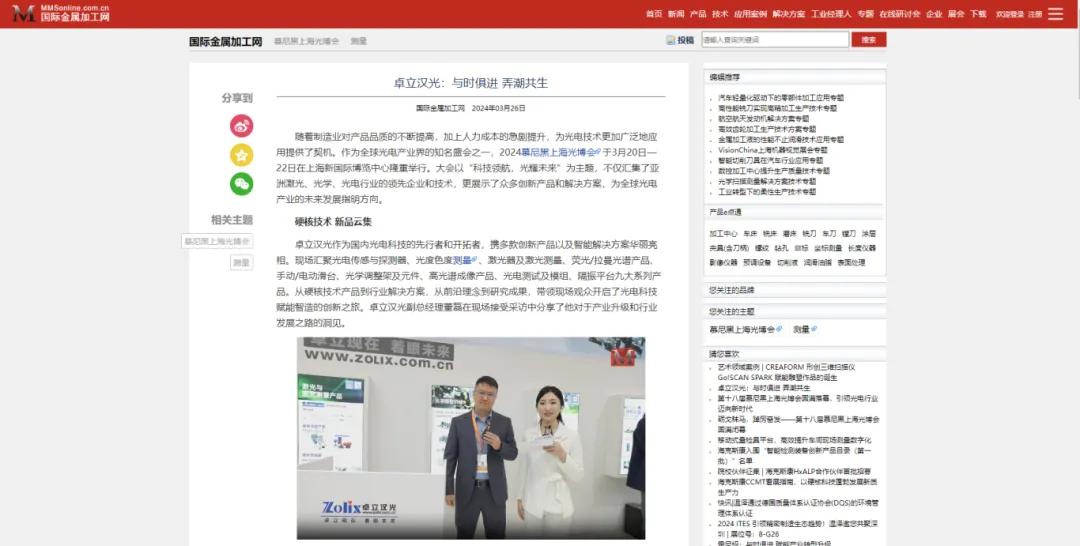 近日,卓立漢光副總經(jīng)理董磊在慕尼黑上海光博會現(xiàn)場接受了國際金屬加工網(wǎng)采訪。采訪現(xiàn)場,董總分享了對于產(chǎn)業(yè)升級和行業(yè)發(fā)展之路的洞見。一起來看看具體報(bào)道如何吧~