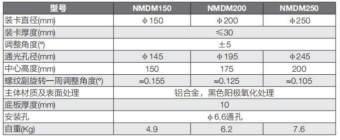 NMDM 系列大型調整架是卓立漢光新開發(fā)的用于安裝∅150mm以上光學元件的專用調整架,該系列產(chǎn)品主體材料采用優(yōu)質鋁合金,在保證穩(wěn)定性的前提下,可通過微調螺紋副調節(jié)俯仰/偏擺角度,靈敏度較高,適合用于高精度