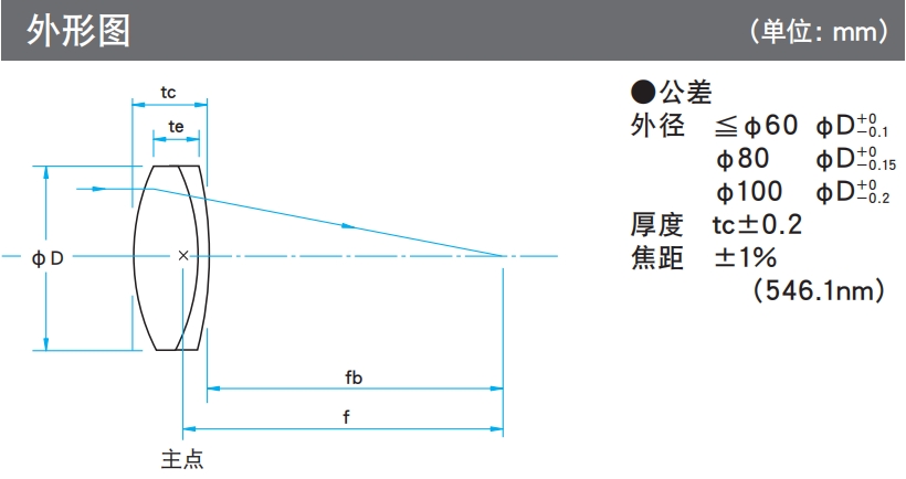 SIGMA KOKI消色差雙膠合透鏡外形圖: