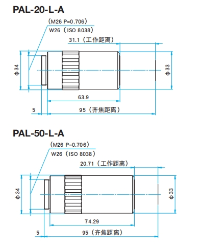 SIGMA KOKI長工作距離顯微物鏡外形圖: