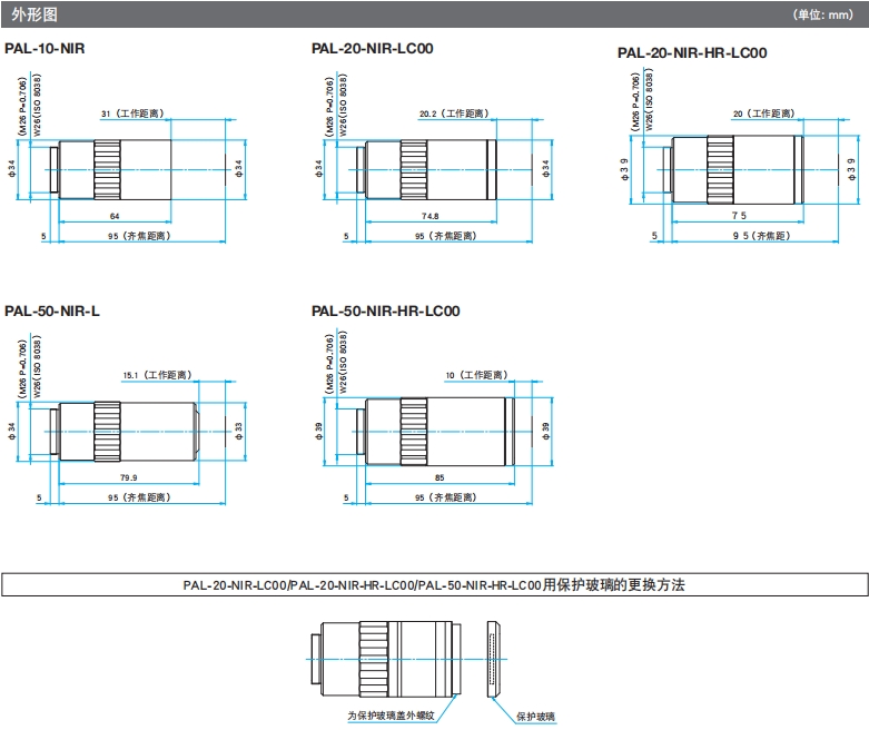 ●PAL-20-NIR-LCO0PAL-20-NIR-HR-LCOO/PAL-50-NIR-HR-LC0附帶了保護(hù)玻璃件(玻璃厚度18mm)。它保護(hù)物鏡免受加工時(shí)切眉的影響。而且,它可以簡(jiǎn)單更換。