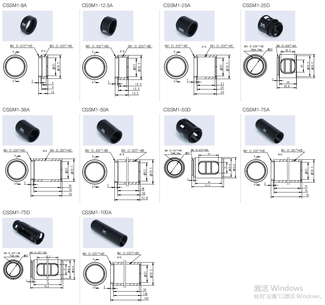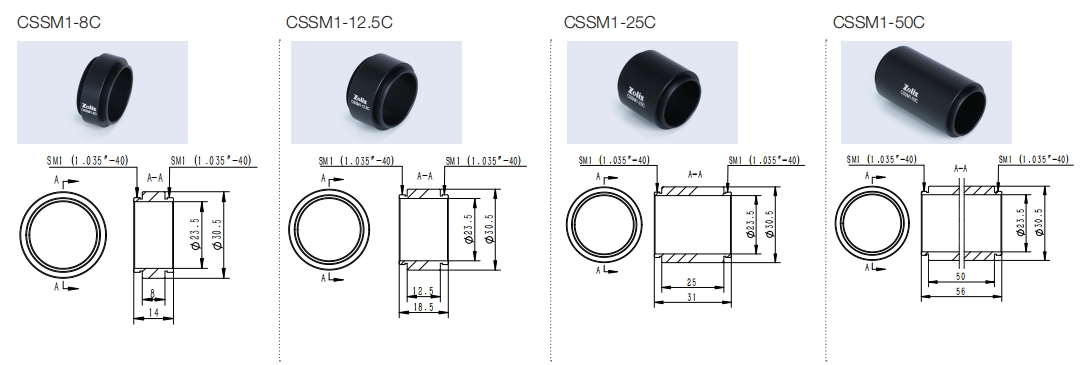設(shè)計(jì),適合快速搭建緊湊型光學(xué)系統(tǒng)。每個(gè)透鏡套筒都附帶一個(gè) SM1R 卡環(huán)用于固定光學(xué)元件。CSSM1-XXD 帶外開(kāi)槽,不需要擰出卡環(huán)