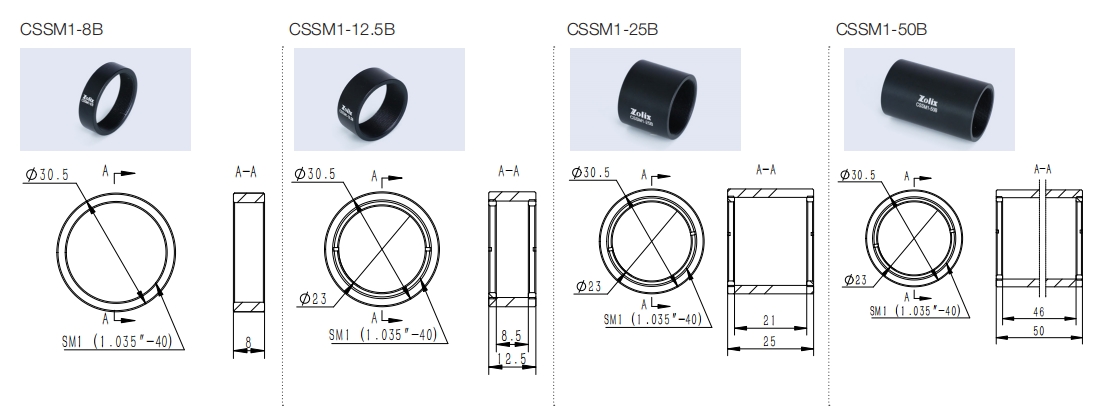 Zolix 內(nèi)外螺紋透鏡套筒一端是 SM1 外螺紋,另一端是 SM1 內(nèi)螺紋,主要是用來(lái)固定直徑 Ø25.4 mm 的光學(xué)元件。采用了可拓展的
