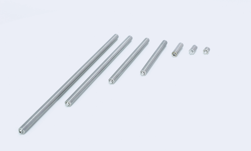Zolix 籠式系統(tǒng)安裝接桿材質(zhì)為不銹鋼,直徑為 Ø6 mm,兼容 30 mm和 60 mm 的籠式系統(tǒng),6.5 mm-500 mm 多種長度規(guī)格可選。頂端帶 M3凹端緊定螺釘,分為可拆卸與不可拆卸兩種,多根接桿串接可拓展長度。