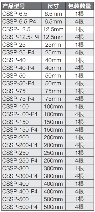 • 長度:6.5 mm-500 mm