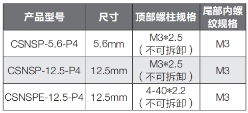 • 頭部螺柱公制M3、英制4-40可選