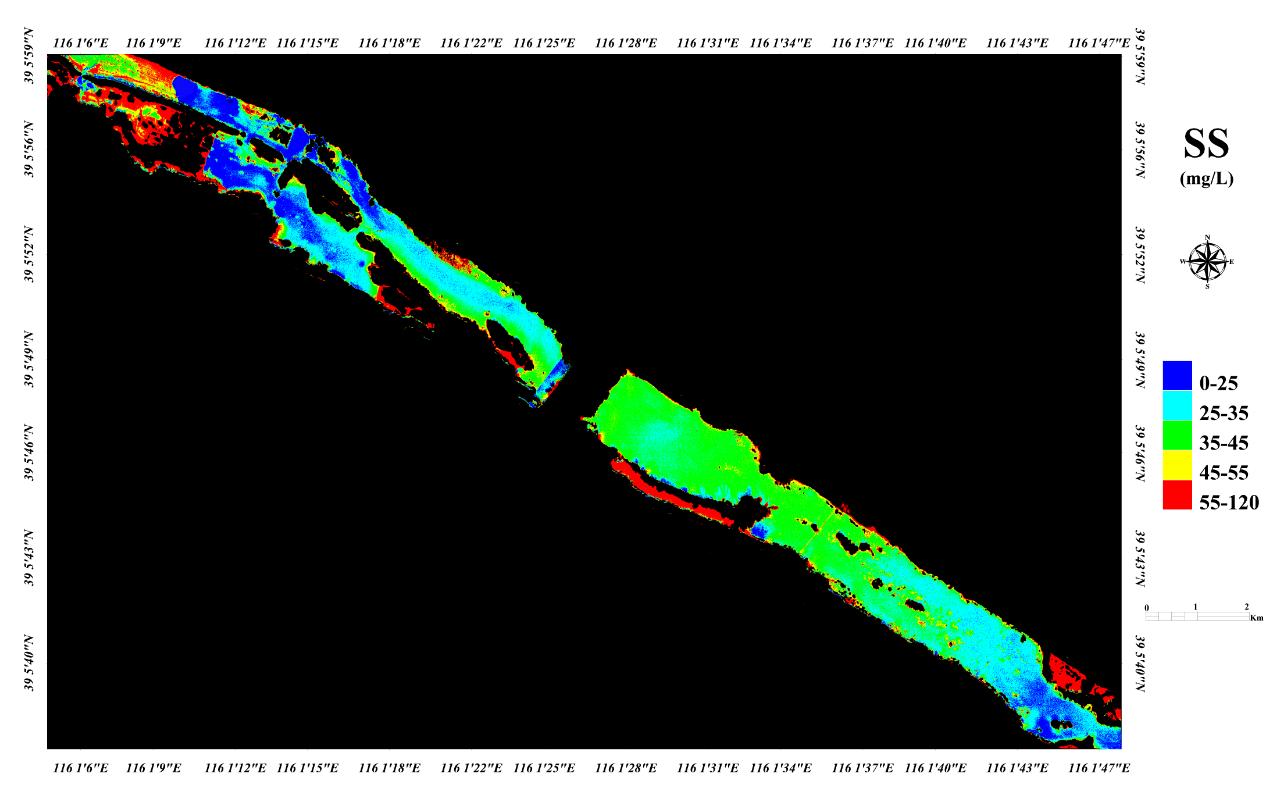 Suspended solids concentration is part of the important water quality parameters in inland water bodies, which can affect the growth of aquatic organisms and the primary productivity of water bodies. The conventional monitoring method of suspended solids concentration is easily limited by external conditions, and cannot monitor the concentration of suspended solids in water in a large area and periodically. As a means of regional water environmental investigation and monitoring, remote sensing technology can overcome the shortcomings of conventional monitoring methods. It has become an essential tool for monitoring the temporal and spatial distribution of suspended solids concentration.