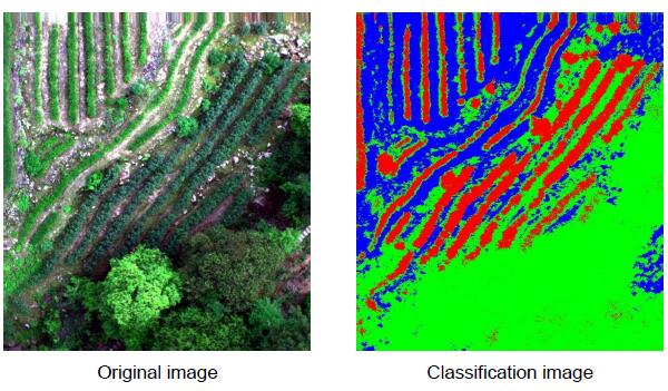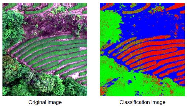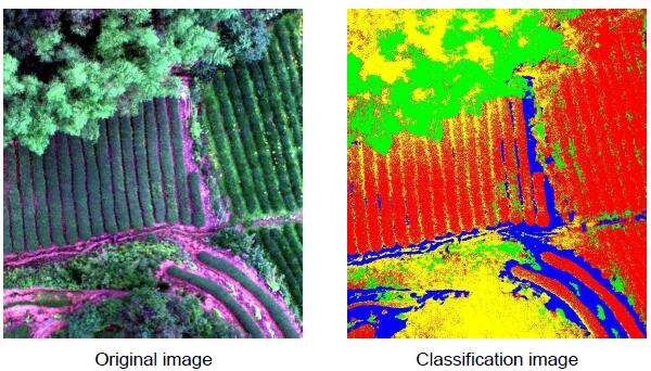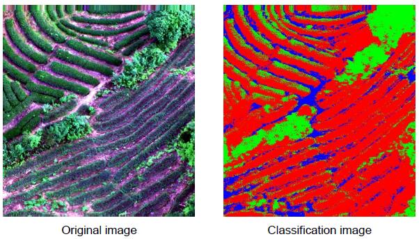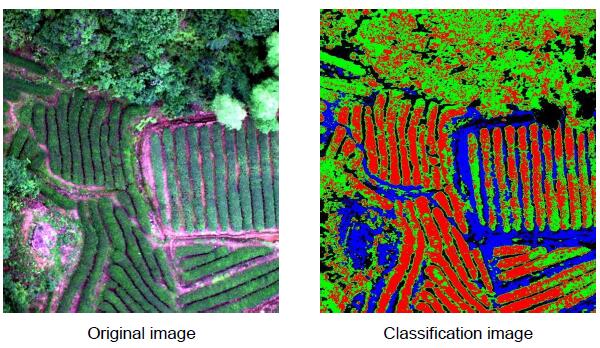 UAV hyperspectral can better identify the distribution location of tea trees. The hyperspectral data of tea obtained under good flight conditions is more conducive to analysis and research, and can further improve the accuracy of classification and identification.