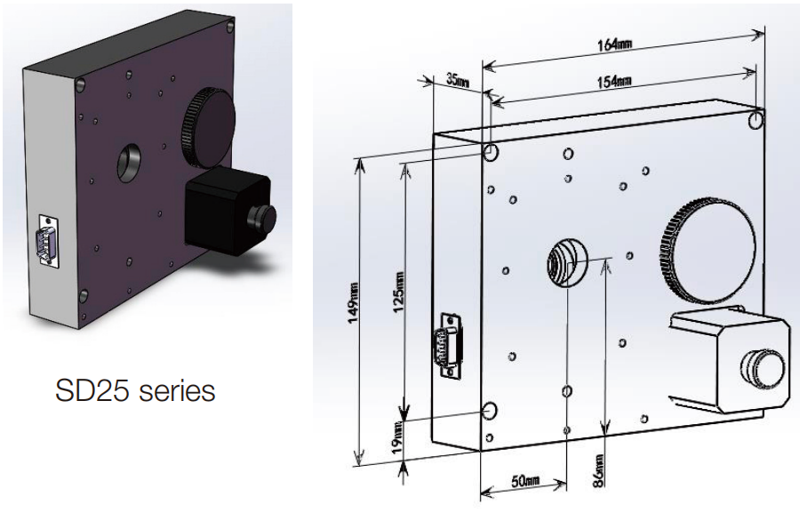 The SD25 six position filter wheel holds up to six 25mm diameter filters(aperture 22mm). For the automatic filter wheel, stepping motor drives the compact filter wheel via the monochromator/spectrograph controller. The SD25 filter wheel is fully compatible with the Omni-λ series monochromators/spectrographs.
