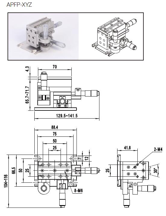 APFP 系列產(chǎn)品屬于高精密型手動(dòng)滑臺(tái),此系列主體材料采用430 不銹鋼,為交叉滾柱導(dǎo)軌、分厘卡或螺紋副驅(qū)動(dòng)、彈簧復(fù)位,該系列產(chǎn)品具有高精度和不大于2μm 的靈敏度。APFP系列提供3 ~ 6 維的整體式產(chǎn)品,適合于手動(dòng)調(diào)整精度要求較高的領(lǐng)域。