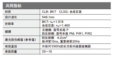 · 有從可見光到近紅外用的BK7材料的透鏡,和可用于350nm以下紫外光的高激光損傷閾值的合成石英透鏡這兩種類型。