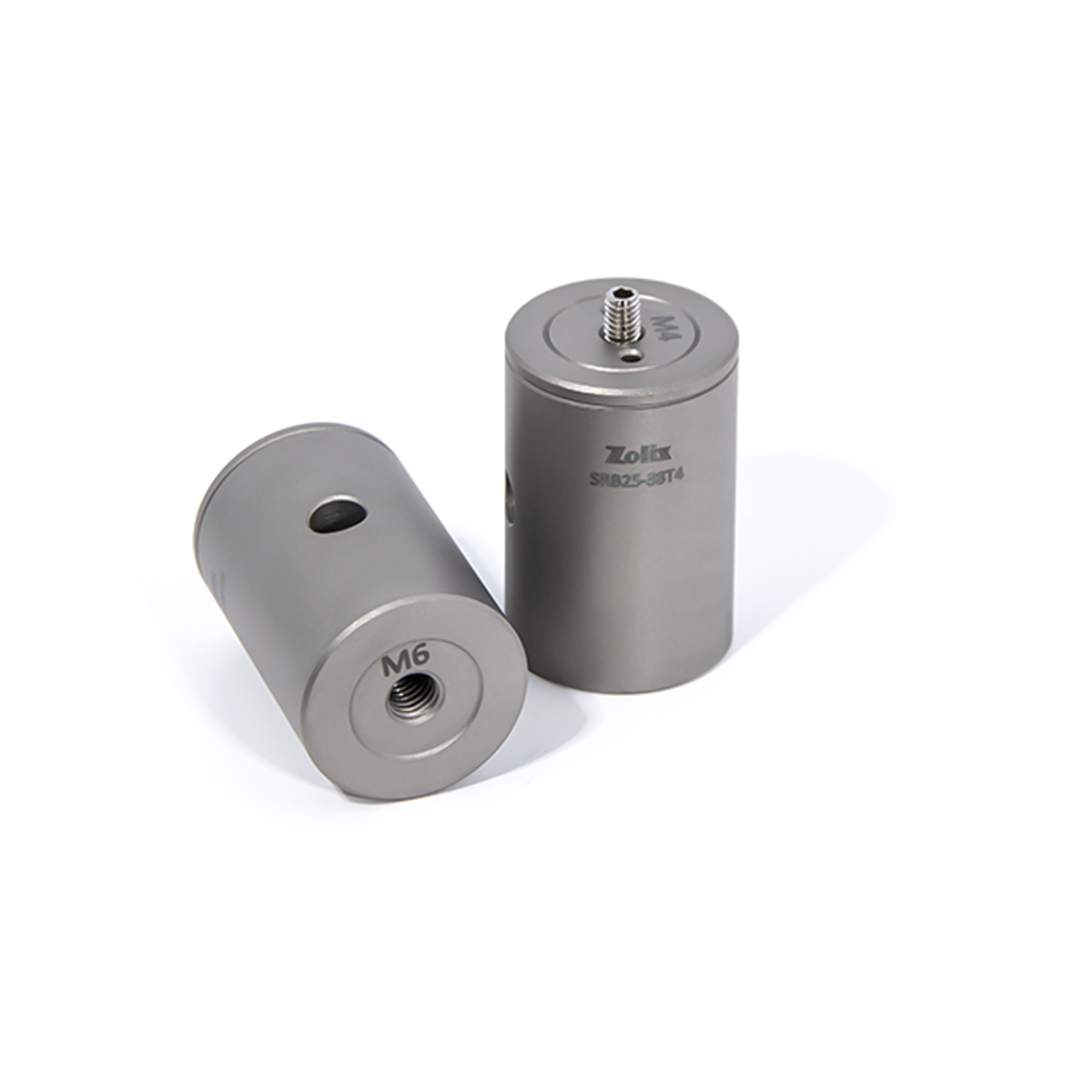 Z0LIX 提供的 25mm 無底座光學(xué)接桿采用 303 不銹鋼實心結(jié)構(gòu)一體式設(shè)計,具備極佳的強度與剛度,表面經(jīng)過細膩砂化及鈍化處理,具備極佳的消光效果。其光學(xué)接桿常用于光機元件構(gòu)成系統(tǒng)的基礎(chǔ)支撐部件,是光機械中使用較多的基礎(chǔ)產(chǎn)品。我們提供的 25mm 無底座光學(xué)接桿包括頂部 M4 和 M6螺紋孔的兩個系列類型,其中頂部 M4 螺紋孔系列接桿長度范圍在 12.5mm~300mm,頂部 M6 螺紋孔系列接桿長度范圍在 10mm~500mm。兩個系列的光學(xué)接桿長度低于20mm的,其安裝孔均為貫穿孔。底部均為M6 螺紋孔,頂部與底部的安裝螺紋孔可用于連接光機元件與平臺。同時我們考慮到一些光學(xué)調(diào)整架需保持光軸中心相對接桿位置固定,我們在頂部設(shè)計了2個2mm 定位銷孔,可用于對光機元件的精準(zhǔn)定位安裝。光學(xué)接桿與面包板或光學(xué)平臺的安裝可使用底部 M6 螺孔連接,并使用接桿徑向φ6mm 貫穿孔配合內(nèi)六角扳手等工具進行鎖緊或拆卸。